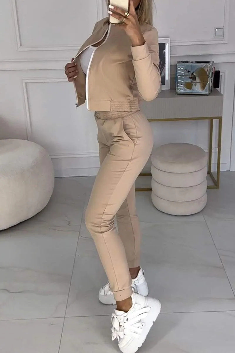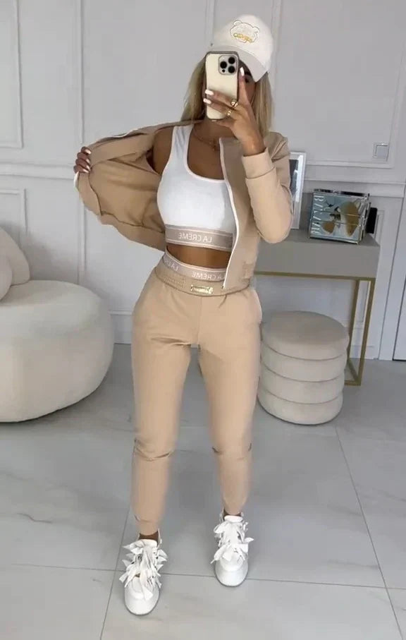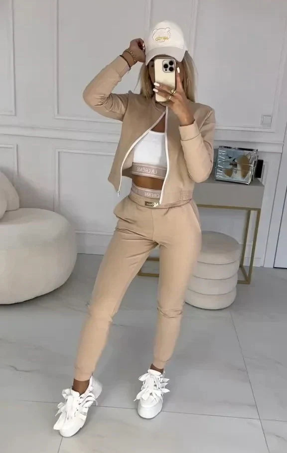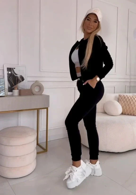 Avec sa veste courte zippée et son legging ajusté, cet ensemble met en valeur votre silhouette tout en offrant une liberté de mouvement optimale.